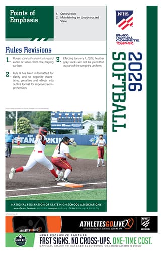 The NFHS is providing FREE Rules Revisions Posters for the new high school softball season. If you are a coach, administrator, or state association representative, click the link below to download the PDF file.